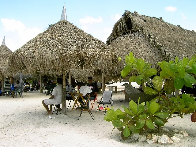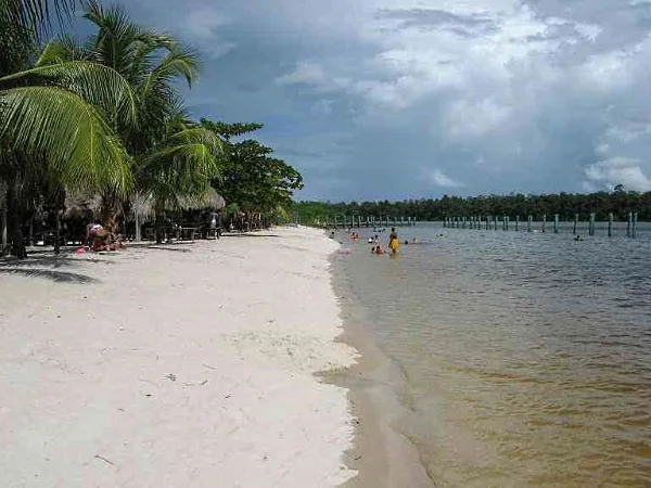 On the raised white sand beach of White Beach you will find small Caribbean huts surrounded with beautiful large palm trees. This first sight undoubtedly will reminiscent you of a wonderful Caribbean island. The only way to proof that you’re really still in Suriname is the color of the water along the beach: not a clearish bluish sea, but a deep nutritional tropical mahogany with light coppery shades and shimmer coloring Amazon river water.