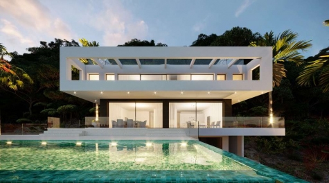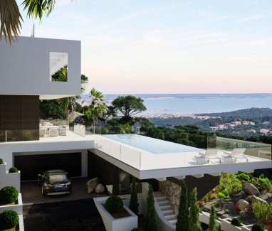 Pretty stunning ultra modern and luxurious with bedrooms South East facing 4-level villa with pools, Jacuzzis and separate studios. All set within half an acre of beautiful landscaped gardens, enjoying breathtaking sea views from its prestigious hillside location near all amenities down up town Son Vida.